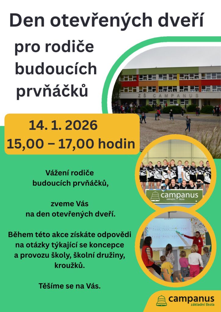 Zveme Vás na den otevřených dveří, který proběhne v naší škole 14.1.2026 od 15,00 do 17,00 hodin.