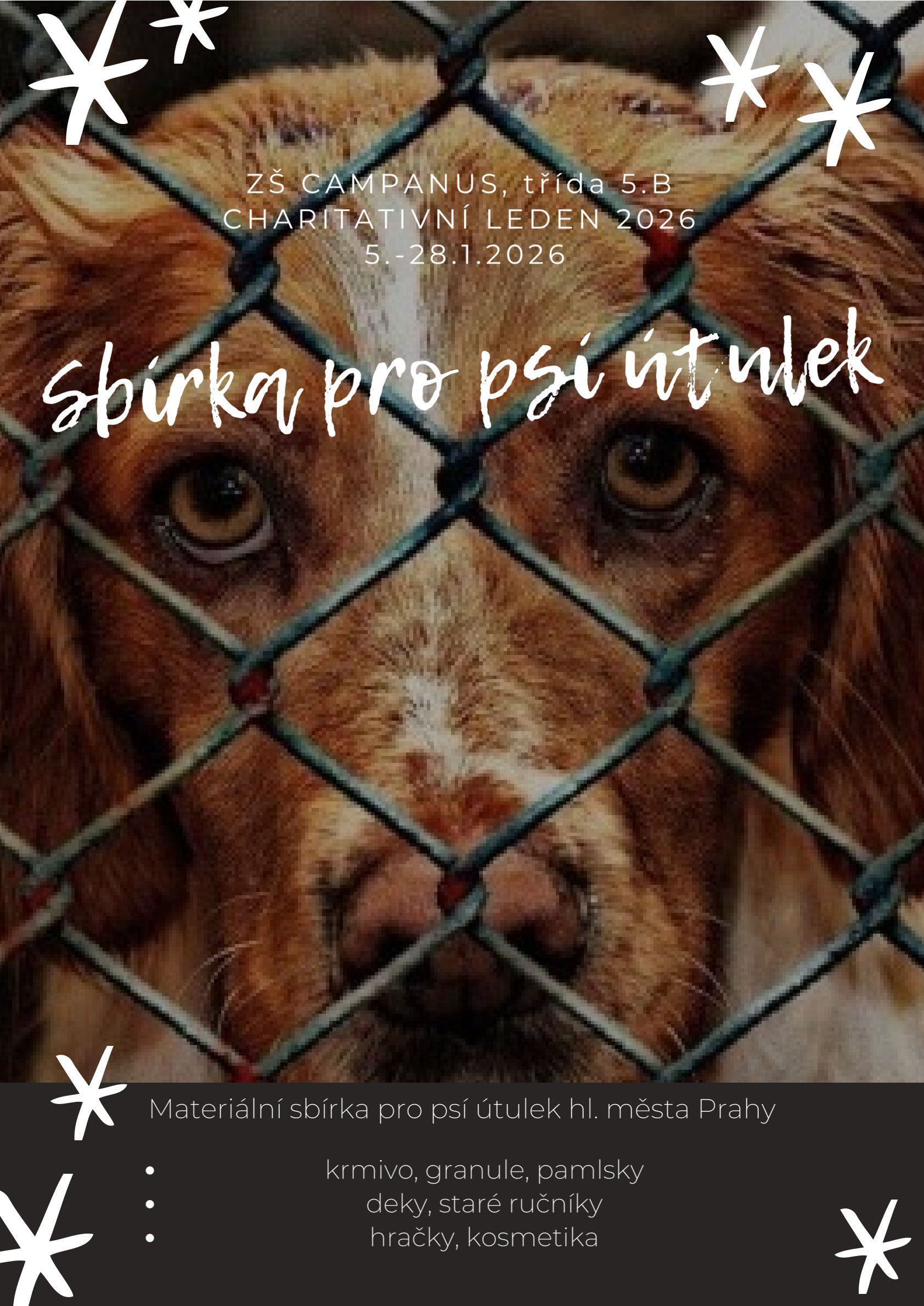 Třída 5.B vyhlašuje na měsíc leden (5.-28.1.2026) materiální sbírku pro psí útulek. Budeme rádi za jakýkoliv pamlsek, hračku nebo dečku. Vše můžete odevzdat ve třídě 5.B nebo na vrátnících školy,…